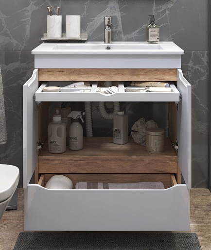 Тумба под раковину Grani 750-2-1 белая/дуб золотой