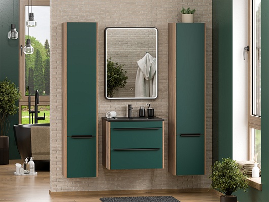 Тумба под раковину Greenwood 60 подвесная зеленая матовая/дуб галифакс олово