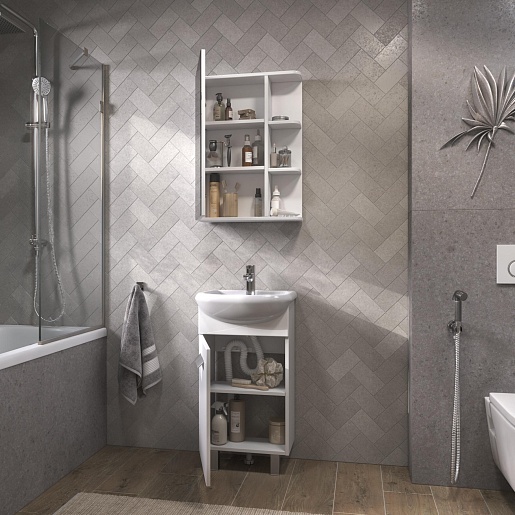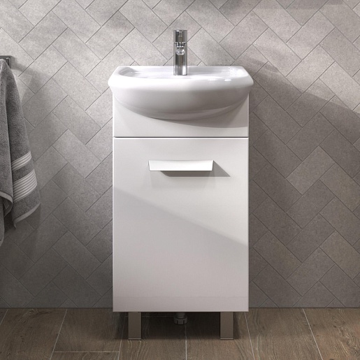 В комплекте: тумба, раковина, крепеж, ножка (3 шт.).