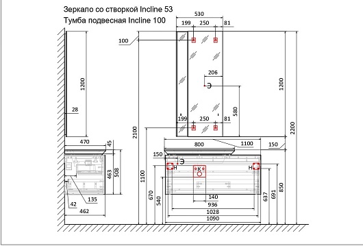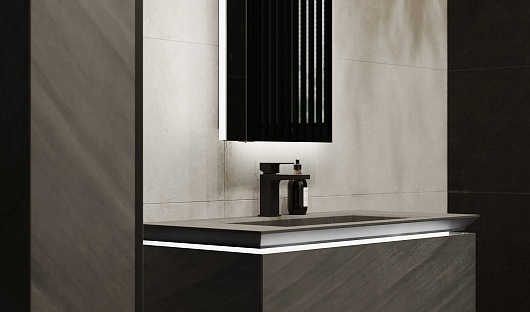 - Скрытое сенсорное включение подсветки сбоку тумбы.