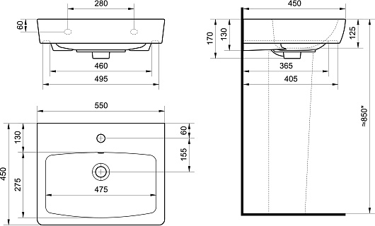 Мебельная раковина Нео 55