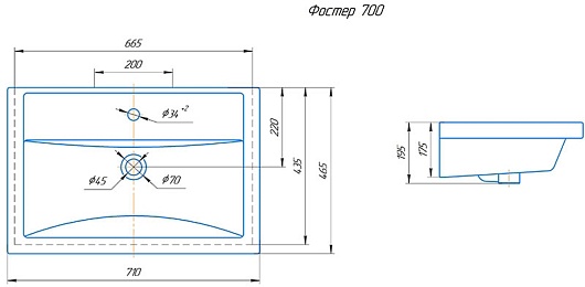 - Раковина Kirovit Фостер 70 со слив-переливом.
