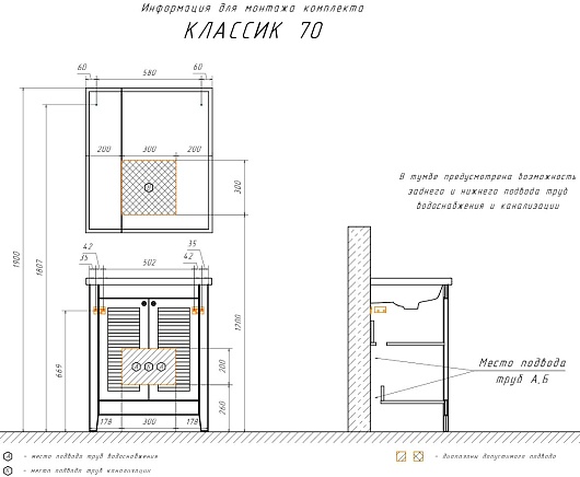 В комплекте: тумба, раковина, ножки.