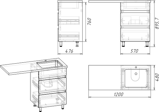 Комплектация: тумба, раковина, ножка (4 шт.).
