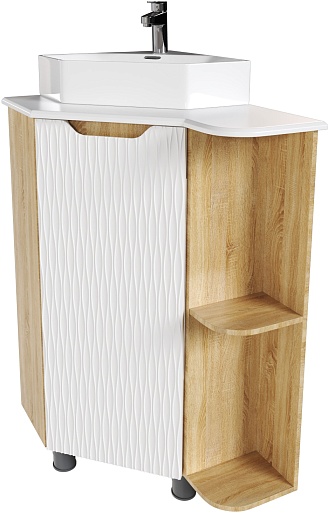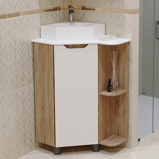 Тумба под раковину Корнер 67.5 R угловая белая/дуб