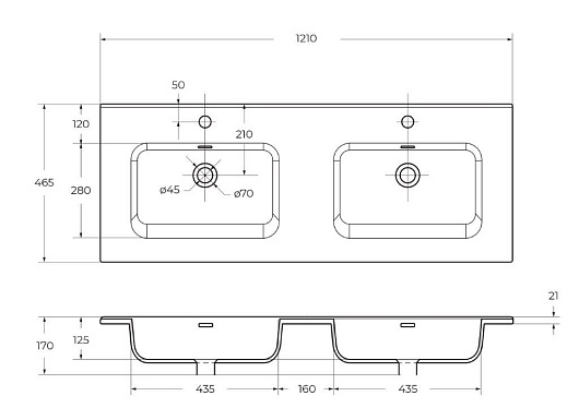 - Керамическая раковина с двумя чашами BB1200-2-ETL, 1210x460x175.