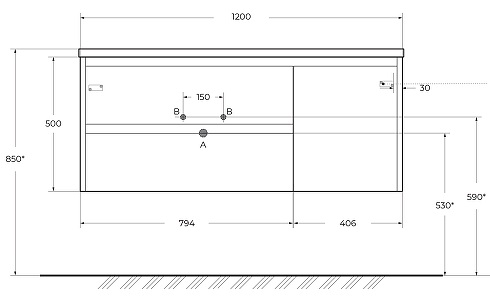 Габариты корпуса тумбы (ШхВхГ): 1200х500х460 мм.