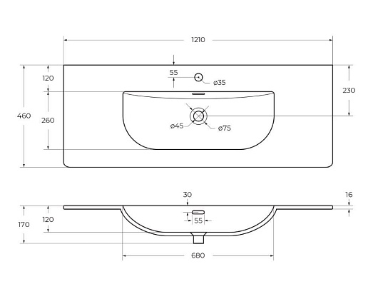 - Керамическая раковина BB1200ETL, 1210x460x175.