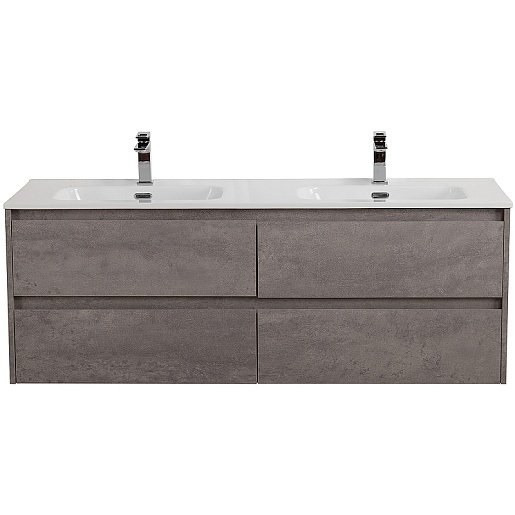 Тумба под раковину Kraft 140 подвесная 4 ящика Cemento Grigio двойная раковина