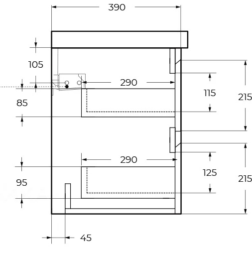 Ящики оснащены доводчиками скрытого монтажа с системой Soft close (плавного закрывания).