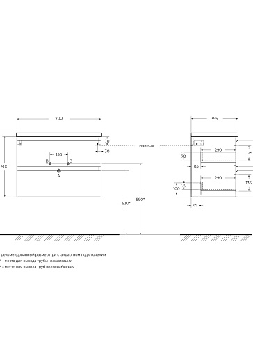 Тумба под раковину Kraft 39-70 подвесная Темно-Серый матовый