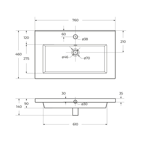 - Керамическая раковина CZR-8070-75, 760x460x143.