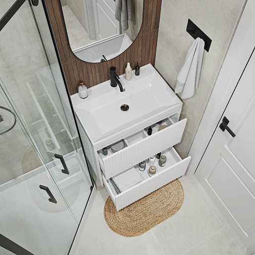 Vivon Тумба с раковиной Kristi 70 белая матовая рифленая