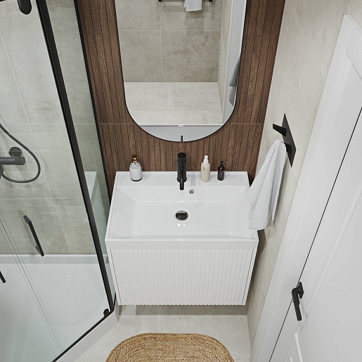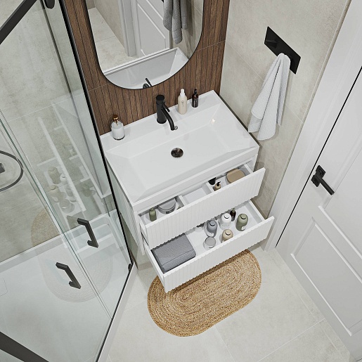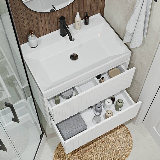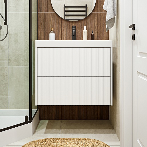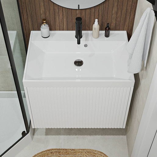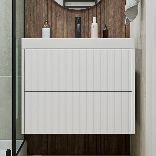 Подвесная тумба с раковиной Vivon Kristi 70 белая матовая рифленая.