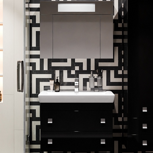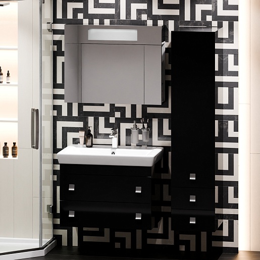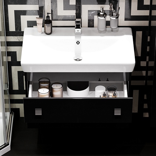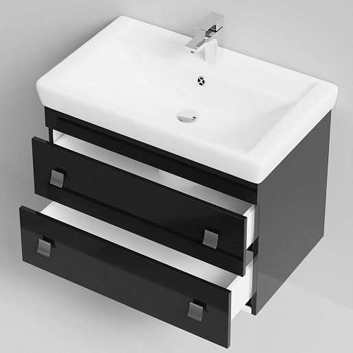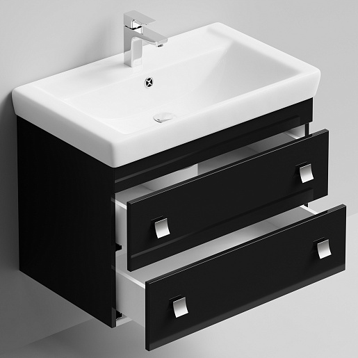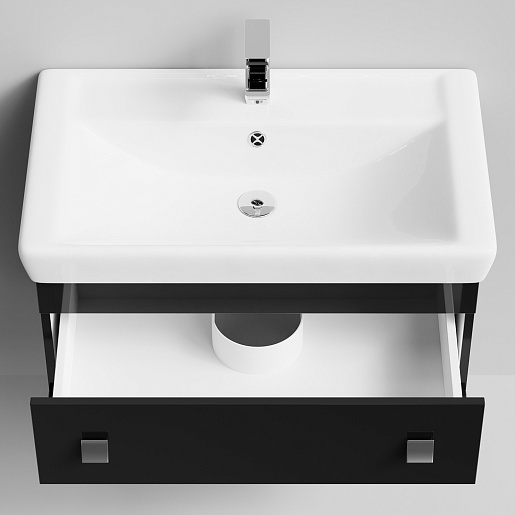 Водолей Тумба с раковиной Квадро 80 подвесная черная
