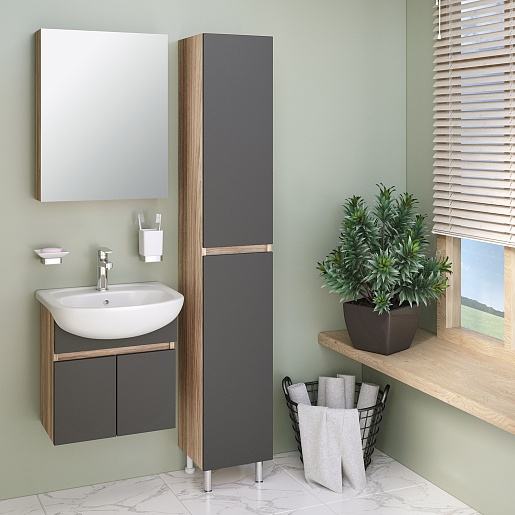 - Цвет: фасад - графит матовый, корпус - дуб серый.