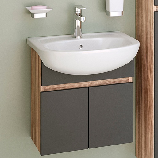 Тумба под раковину Лада 50 подвесная графит/дуб серый