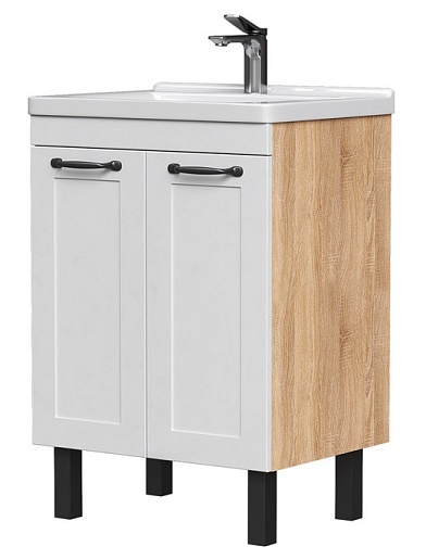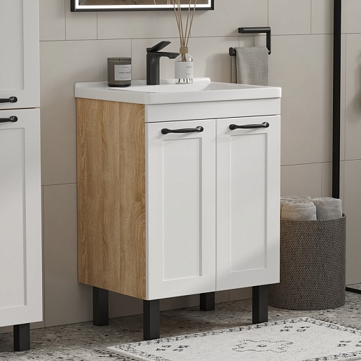 Тумба под раковину Lago 70 2 ящика напольная белая/дерево