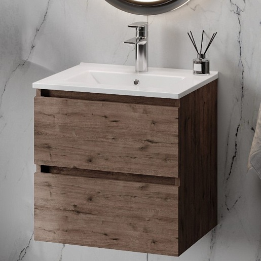 Подвесная тумба с раковиной Teymi Laina 50 дуб темный - арт. T60811 / T51000.