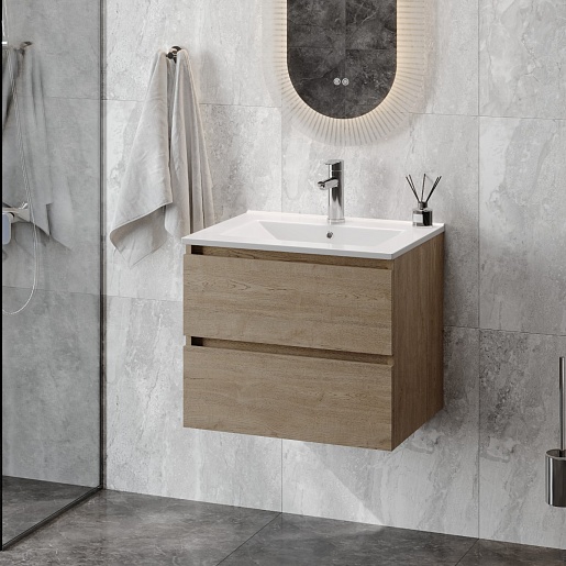 Подвесная тумба с раковиной Teymi Laina 70 дуб светлый - арт. T60808 / T51004.