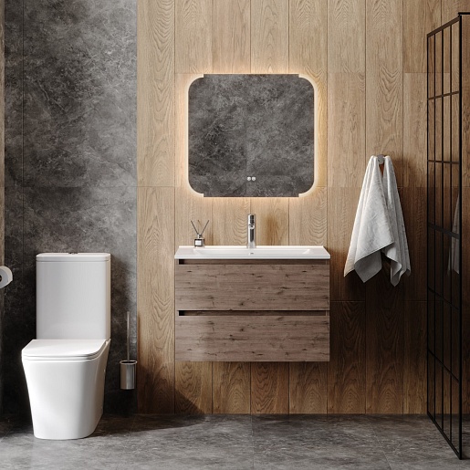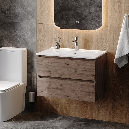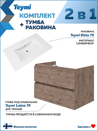 Подвесная тумба с раковиной Teymi Laina 75 дуб темный - арт. T60814 / T51005.