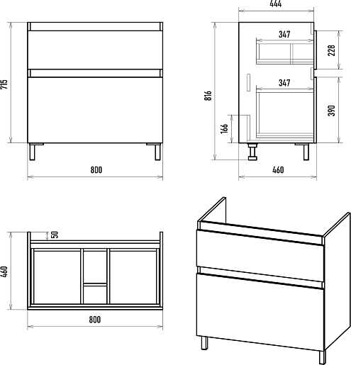 Комплектация: тумба, раковина, ножки, крепеж.