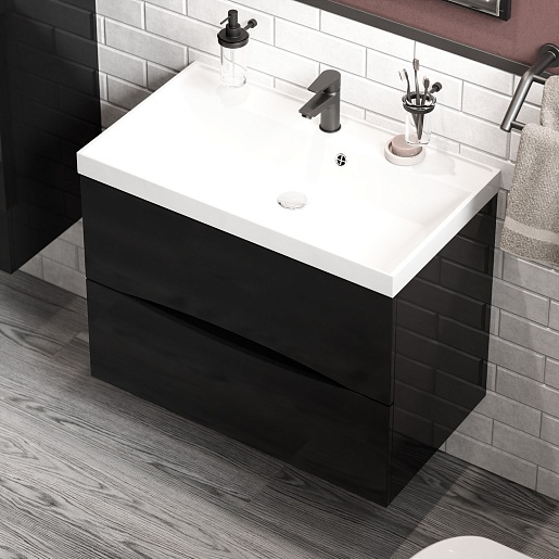Водолей Тумба с раковиной Лайт 80 подвесная черная