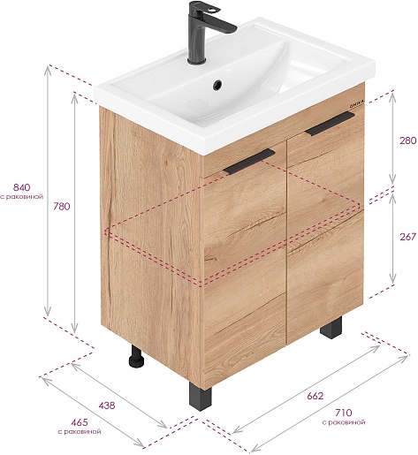 Onika Тумба с раковиной Легран 70 дуб галифакс