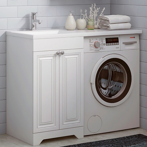 Corozo Тумба с раковиной Леон 110 L под стиральную машину белая