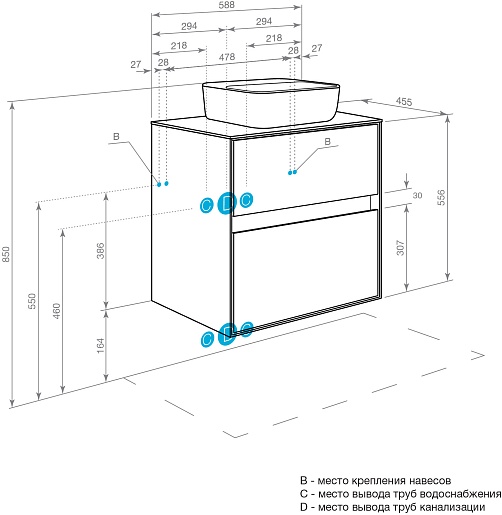 Столешница под раковину Акватон Либерти 60 - арт. 1A280903LYC70.