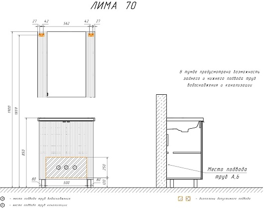 В комплекте: тумба, раковина, комплект ножек.
