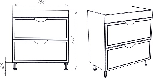 - 2 выдвижных ящика.