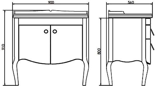 В комплекте: тумба, раковина, ножки.