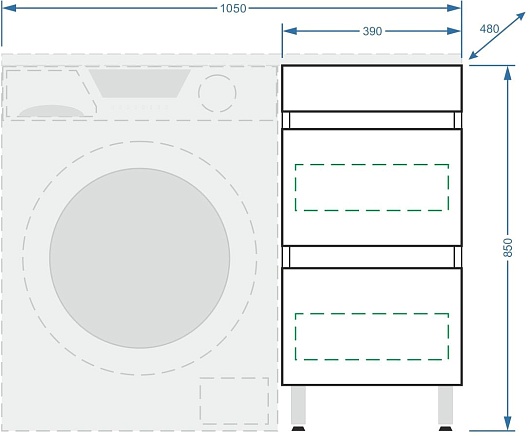 - Тумба предназначена для установки под раковину, расположенную над стиральной машиной.