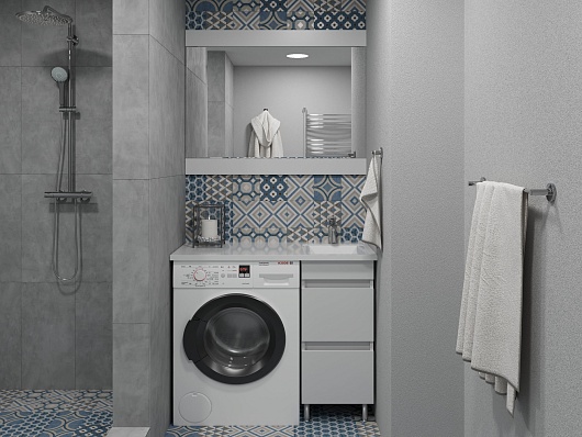 - Правосторонняя раковина со столешницей под стиральную машину.