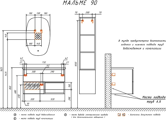 Подвесная тумба с раковиной Comforty Мальме 90 - арт. 00-00004200CF.