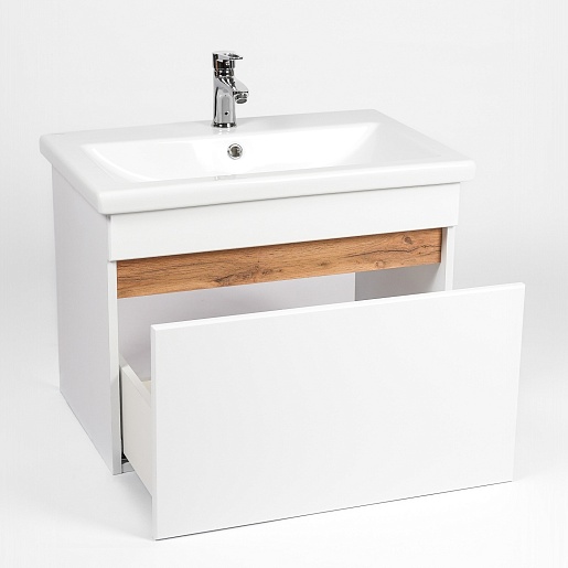 Тумба под раковину Мальта 50 подвесная белая/дуб вотан