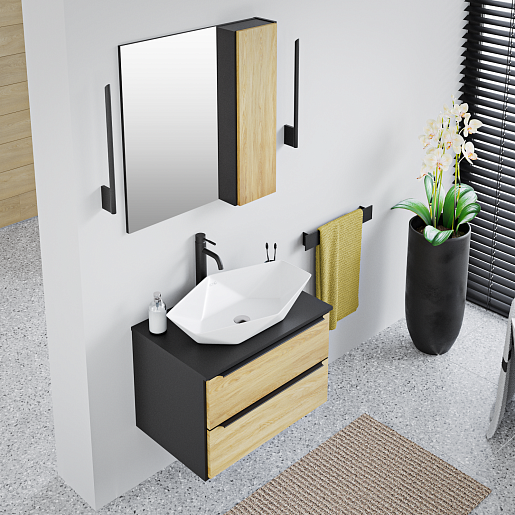 Тумба под раковину Мальта 70 подвесная дуб/черная