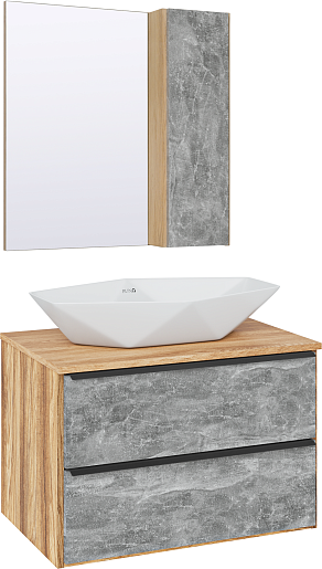 Runo Тумба с раковиной Мальта 70 Poligono подвесная серая/дуб