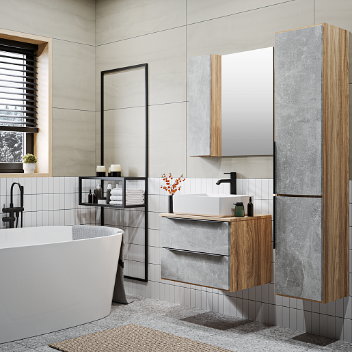 Тумба под раковину Мальта 70 подвесная дуб/серая