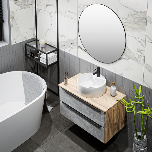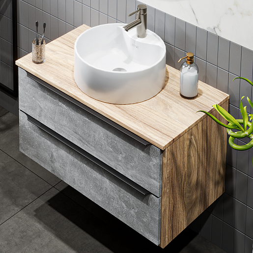 Тумба под раковину Мальта 85 подвесная дуб/серая