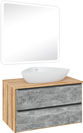 Тумба под раковину Мальта 85 подвесная дуб/серая