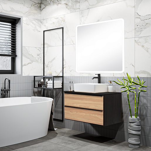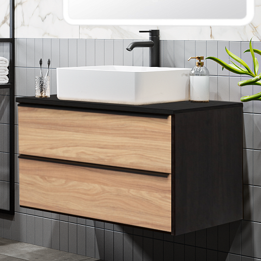 Тумба под раковину Мальта 85 подвесная дуб/черная
