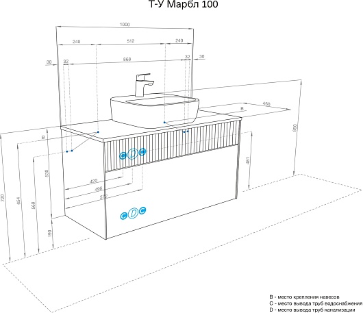 Тумба с раковиной Акватон Марбл 100 - арт. 1A276301MH4C0 / 1WH501710.