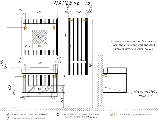 В комплекте: тумба, раковина, столешница, крепеж.