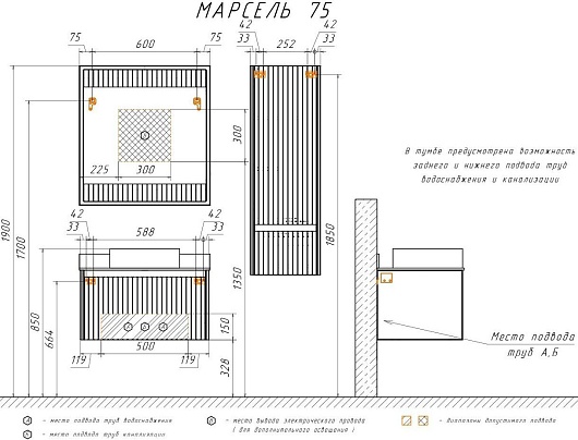 Подвесная тумба с раковиной Comforty Марсель 75 - арт. 00-00013395CF.