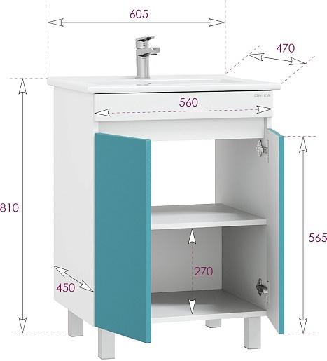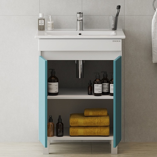 Onika Тумба с раковиной Марви 60 белая/бирюзовая