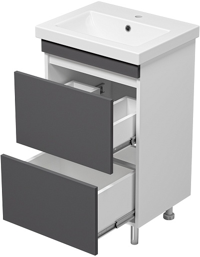 Тумба под раковину Майна 50 2 ящика графит/белая