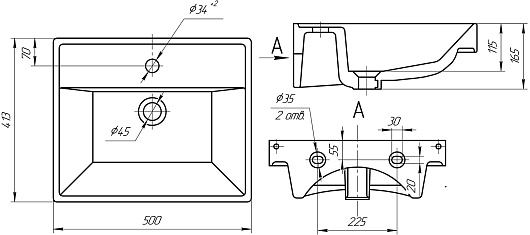 Тумба с раковиной Misty Майна 50 2 ящика графит/белая - арт. Э-Май01050-502Я / БП-э000000550.