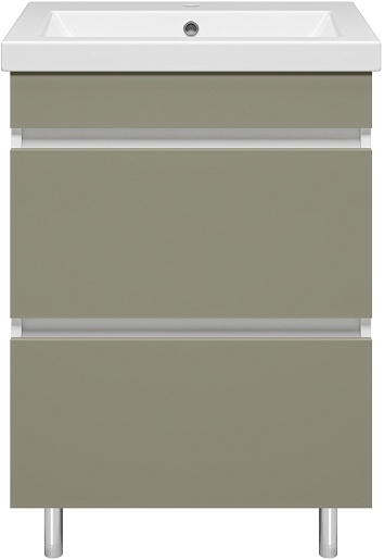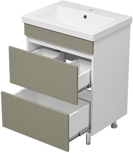 Тумба с раковиной Misty Майна 60 2 ящика хаки/белая - арт. Э-Май01060-532Я / S-UM-COM60/1-w.